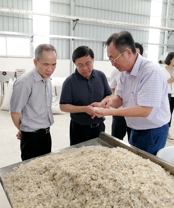 5月15日,碧桂園集團副總裁、碧桂園農(nóng)業(yè)控股CEO梅永紅一行在湛江市政府和湛江市農(nóng)業(yè)局有關(guān)領(lǐng)導的陪同下到我集團公司考察及洽談合作,王榮輝董事長親自接待了梅永紅一行并陪同參觀了湛江工廠。在王榮輝董事長的陪同下,梅永紅副總裁參觀了湛江工廠榮譽墻、蝦肽肥產(chǎn)品展示區(qū)、公司生產(chǎn)車間、產(chǎn)品包裝車間、蝦殼原材料存放區(qū)等。