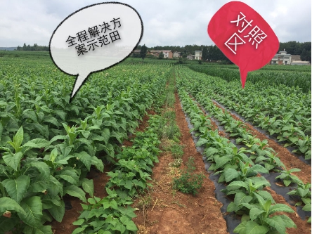 圖為 煙草試驗田使用蝦肽肥改良土壤后種植效果對比圖