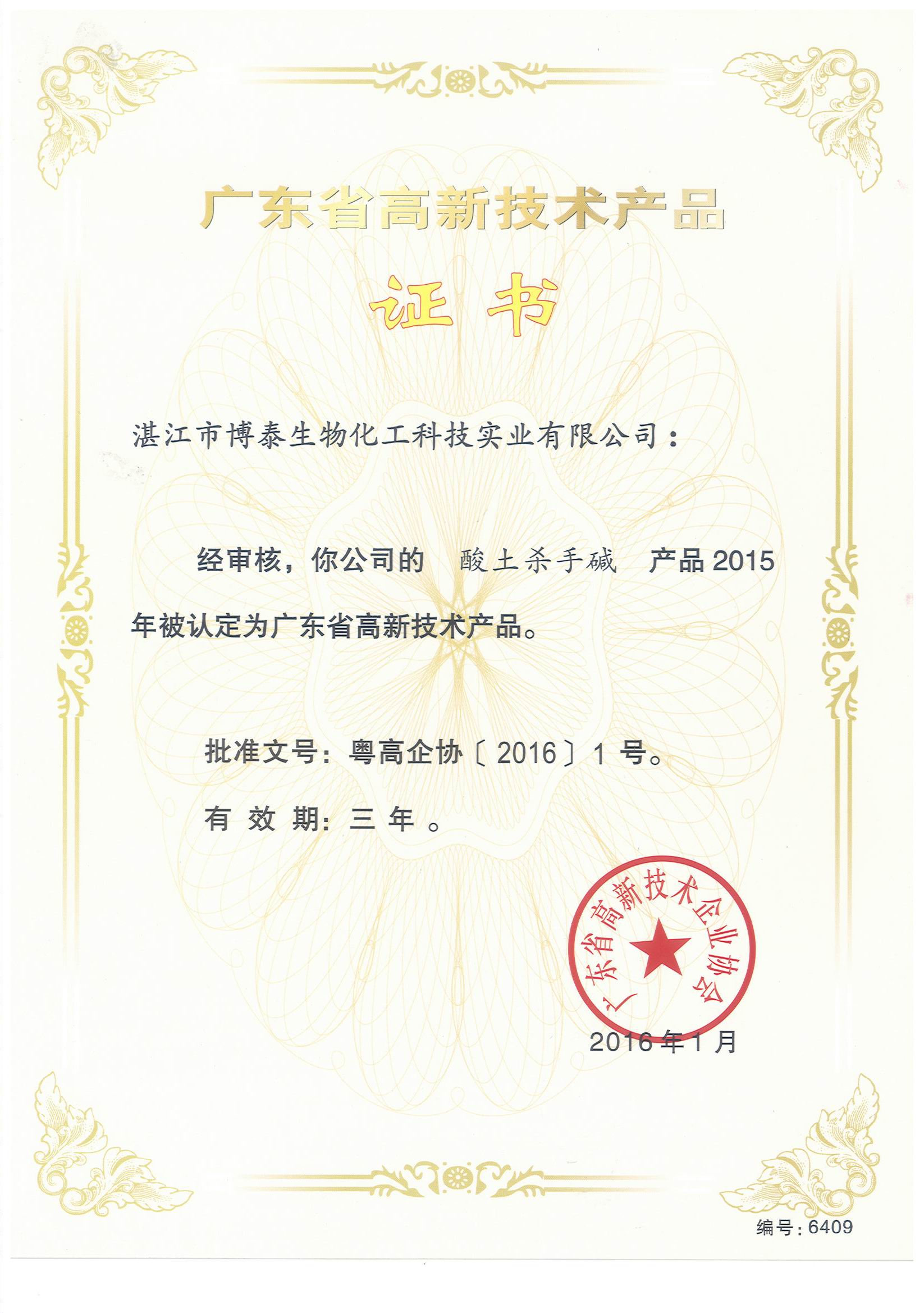 2016年伊始,我司便先后獲得了由“廣東省高新技術(shù)企業(yè)協(xié)會(huì)”頒發(fā)的“高新技術(shù)產(chǎn)品”證書(shū),獲得該殊榮的產(chǎn)品為“酸土殺手堿”和“蝦肽蝦紅素”。在此,我僅代表我司表示感謝,我們會(huì)繼續(xù)努力,研發(fā)出更多更有利于人民的好產(chǎn)品出來(lái)回饋大家的,敬請(qǐng)期待!
