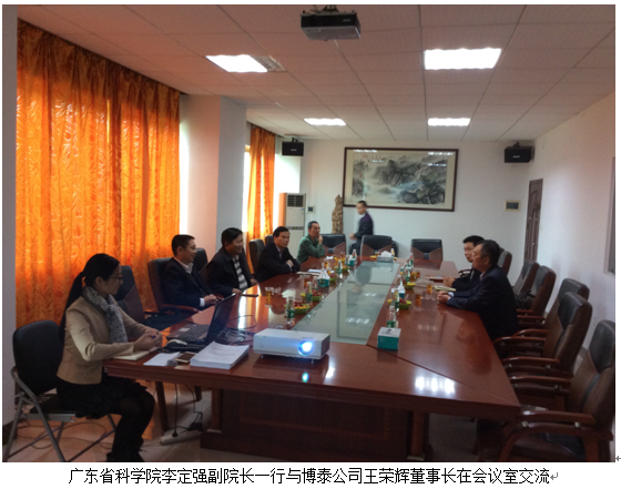 廣東省科學(xué)院李定強(qiáng)副院長在湛江市科技局洪濤書記到我司商討省科學(xué)院與博泰開展院企多領(lǐng)域合作的事宜